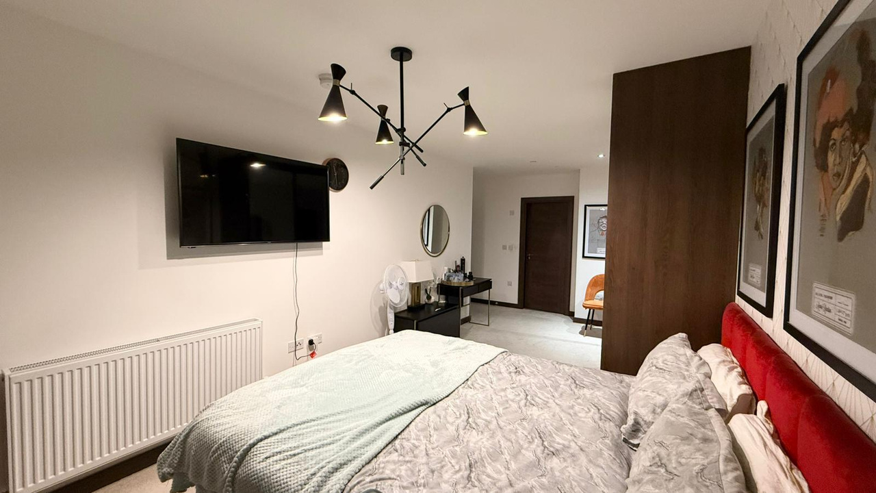 The master bedroom is a true sanctuary, complete with a stylish ensuite bathroom and ample storage. A second generously sized bedroom and a beautifully appointed main bathroom complete the space, ideal for professionals, couples, or small families.